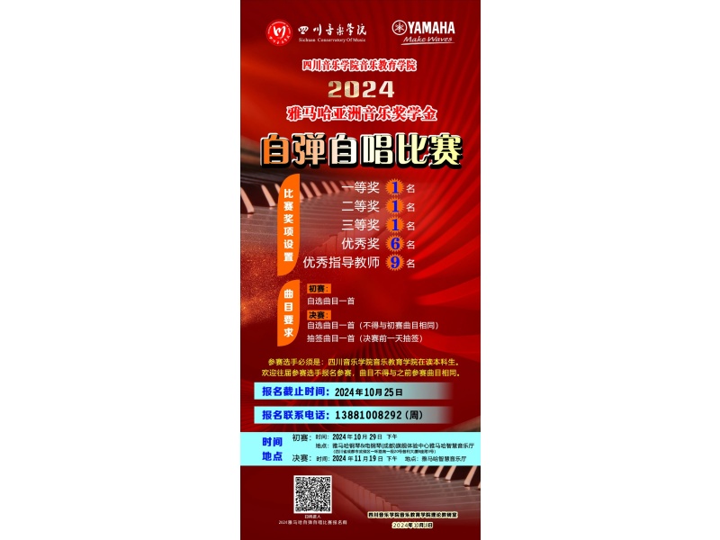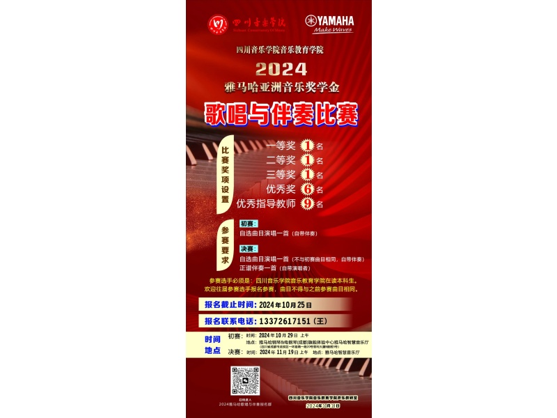 为更好体现音乐教育专业教学特色,提高学生专业素养,激发学生积极性,推进教学与实践相结合,贯彻“以赛促教,以赛促学,以赛促练”的教学理念,伟德bv国际体育音乐教育学院联合雅马哈乐器音响 (中国) 投资有限公司投资赞助,于近日启动2024雅马哈亚洲音乐奖学金“自弹自唱” 比赛和“歌唱与伴奏”比赛,欢迎同学们踊跃报名。