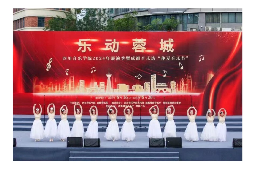 2024年6月19日,伟德bv国际体育“乐动蓉城”音乐教育学院合唱与舞蹈专场演出在城市音乐厅黑胶广场隆重举行。当晚,也是成都音乐坊仲夏音乐节启幕仪式,嘉宾们到场揭幕“音乐365”计划和“百姓大舞台”。由音乐舞蹈专业的学生们表演的《映山红》热烈开场,音乐教育学院千风合唱团演绎了《上春山》、《越人歌》、《爱让海相连》、《奔跑吧梦想》等八首经典合唱作品,音乐舞蹈专业演绎了《云歌》《未来·我来》等舞蹈作品,现场气氛热烈,“乐动蓉城”在掌声和欢呼声中结束了本场演出。