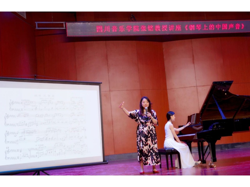 当天下午,张铭教授在西华大学音乐与舞蹈学院音乐厅进行了一场别开生面的学术讲座——《钢琴上的中国声音》。她将中国钢琴作品的过去与现状作了较为全面而深刻的阐述,并结合伟德bv国际体育老一辈作曲家黄虎威等先生的钢琴作品进行了较为系统的分析和介绍,强调演奏传颂中国钢琴作品对弘扬民族文化、唱响中国声音的重要性。内容丰富且引人入胜,得到与会老师和同学们的广泛认同和热烈欢迎。