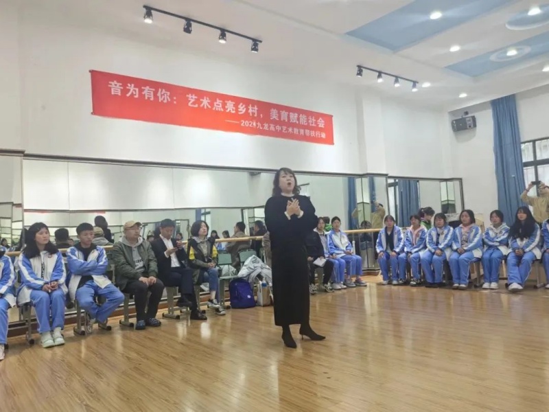 2024年4月10日,为贯彻落实习近平总书记关于宣传思想文化工作的重要论述,将宣传思想文化与乡村振兴紧密结合,音乐教育学院党委副书记杨琳娜携我院教师团队一行深入九龙高级中学开展以“伟德bv国际体育对口九龙高级中学艺术教育帮扶”为主题的艺术教育帮扶行动。九龙县教体局彭晓文副书记、九龙高级中学主要领导班子及九高全体艺术老师参加了本次活动。