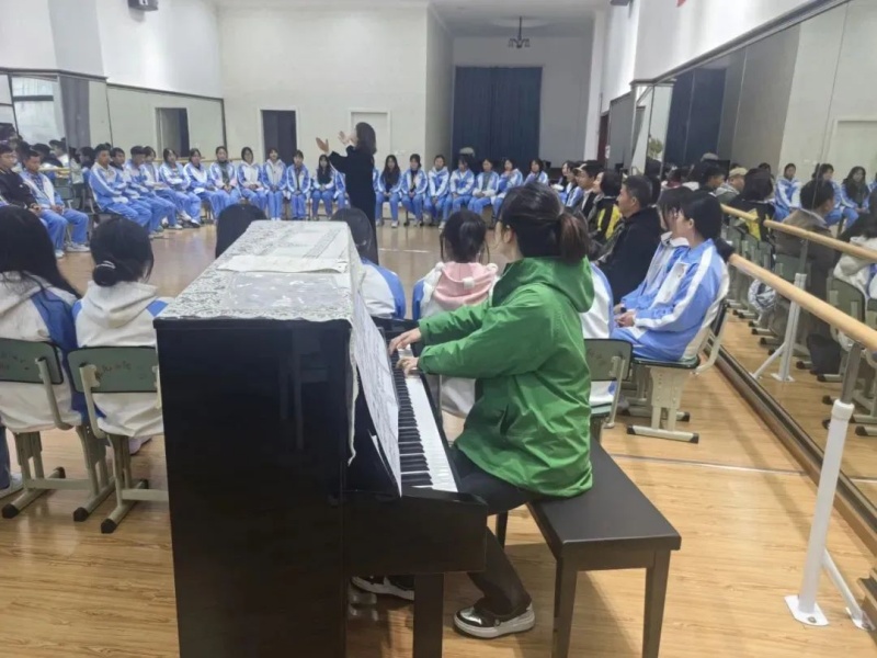4月11日上午,我院钢琴教师罗彧教授,声乐教师韩悦副教授及打击乐教师白海川副教授走进九龙高级中学的艺术课堂,对该校艺体培训学生进行了细致专业的声乐和钢琴表演指导、节奏训练,通过老师们的交流指导,学生们得以深入理解艺术表达的内涵和多样性,进一步提高了自己的专业积累,培养了专业兴趣。