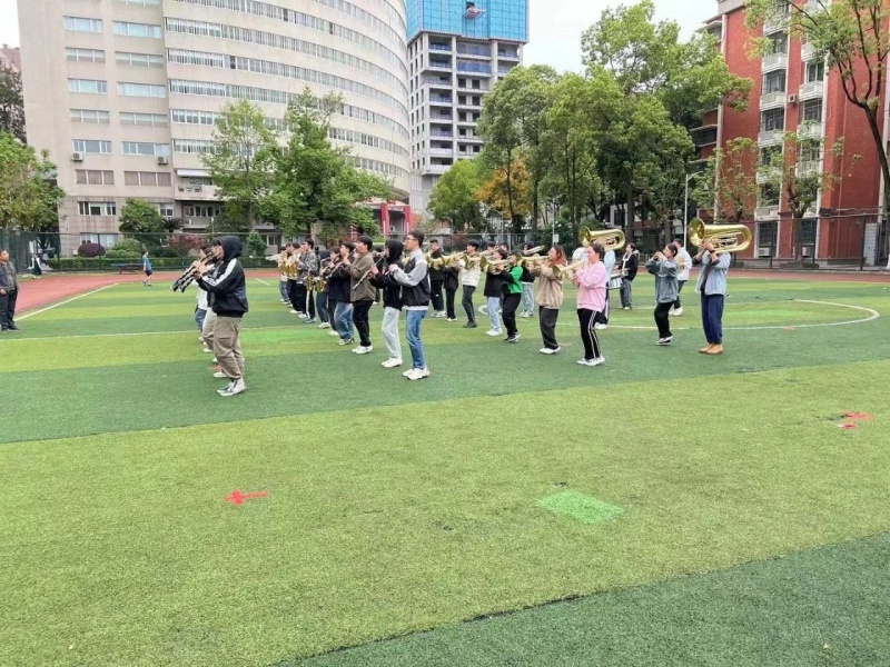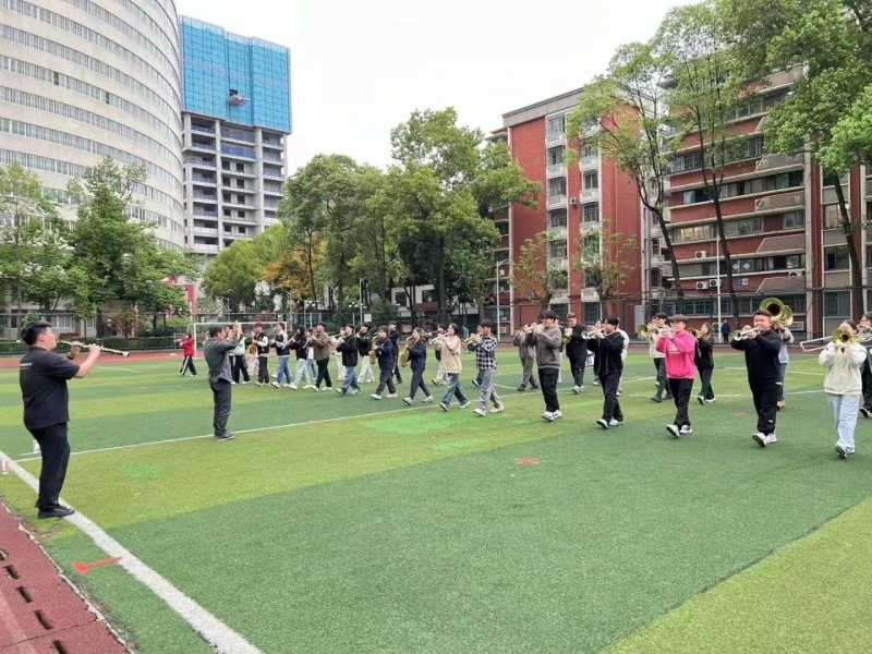 2024年4月5日、4月6日音乐教育学院管乐与乐队训练专业师生于武侯校区操场开展了行进管乐专家课。此次讲座特别邀请亚洲行进艺术协会副会长,中国管乐学会行进联合会常务副会长、原解放军军乐团行进编导(大校军衔)荣艾国先生。此次专家课既是行进管乐的日常实训的一部分,也是为伟德bv国际体育春季运动会开幕式表演活动做准备。音教学院的师生们利用清明节假期进行训练,克服了雨天的影响,圆满的完成了本次假期行进乐训练。