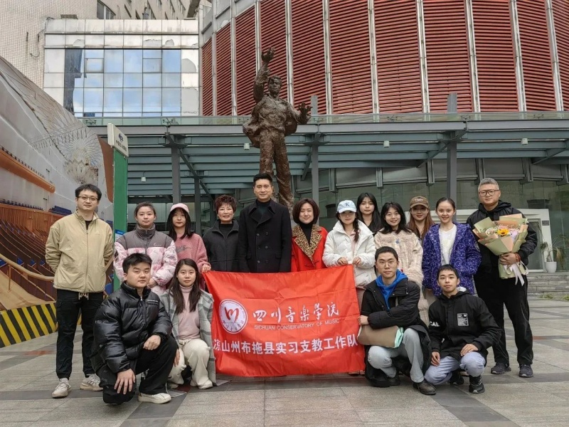 音乐教育学院党委书记、院长王志昕,党委副书记杨琳娜,副院长唐碧蓉、第九批支教工作带队教师白海川、辅导员付婉颖一同送别了实习工作队的11名师生,并对出征的师生们表达了学院的真切关怀,希望学生们珍惜此次实践学习的机会,在未来顶岗实习支教过程中既要传承发扬以往九批次积累的典型经验,更要不断创新、勇于求索,展现艺术类学科在基层地区特别是偏远山区教学的重要美育价值,以爱出征,向光启程,用这份荣誉和责任为布拖的孩子们浇灌出更绚烂的未来。