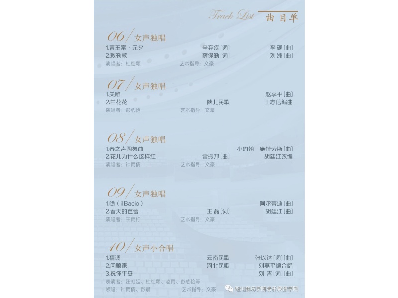 主题:胡婉琪教授声乐教学班汇报展示——中外艺术歌曲、古诗词音乐会