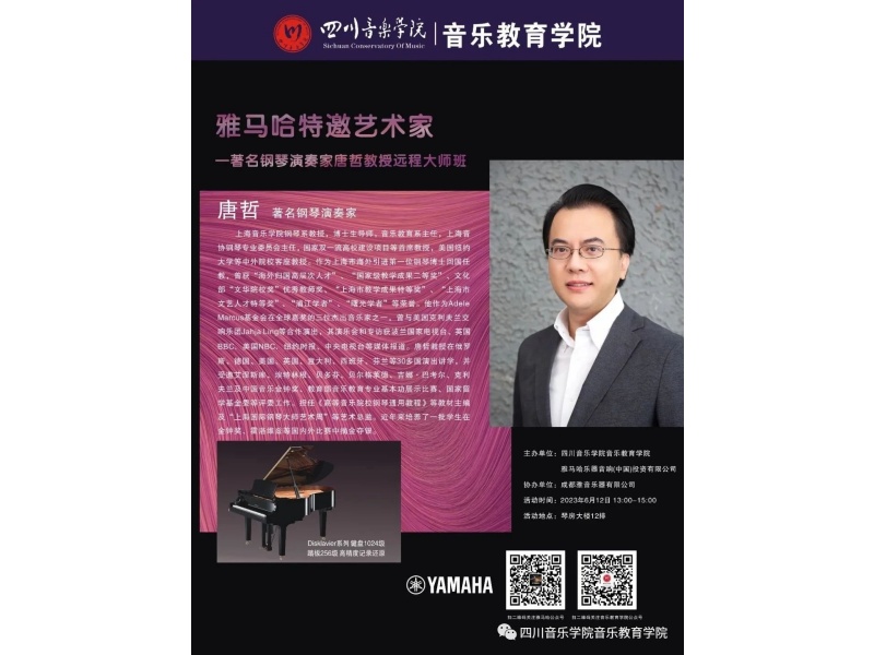 本次活动在雅马哈跨界钢琴的帮助下进行,届时著名钢琴家唐哲教授将以线下和线上远程的方式进行教学,敬请期待!