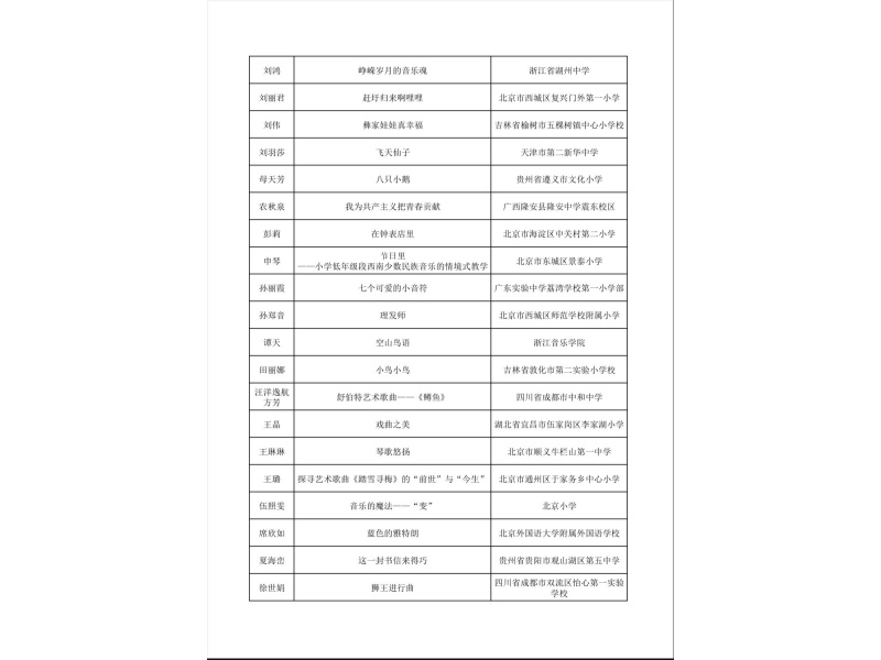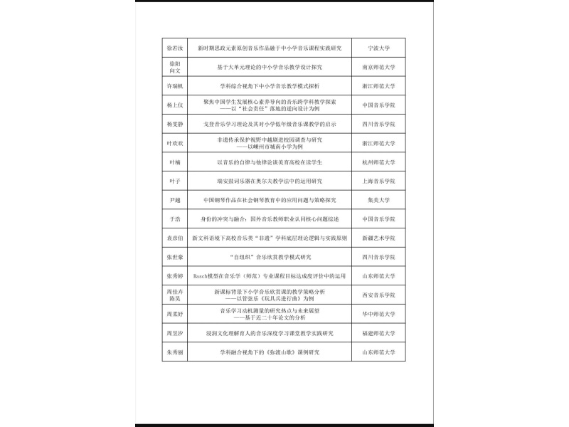 《音乐教育学课程档案袋式表现性评价探究》获 一等奖 ,《SOLO分类理论在高中音乐鉴赏教-学-评中的应用》获三等奖