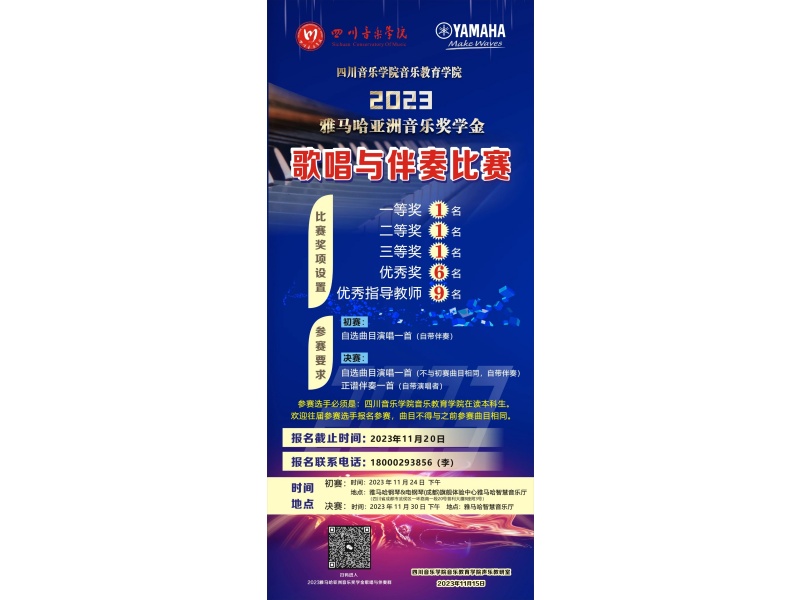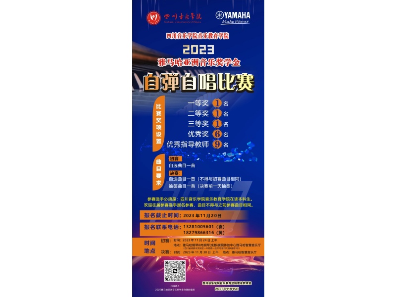 为更好体现音乐教育专业教学特色,提高学生专业素养,激发学生积极性,推进教学与实践相结合,贯彻“以赛促教,以赛促学,以赛促练”的教学理念,伟德bv国际体育音乐教育学院联合雅马哈乐器音响 (中国) 投资有限公司投资赞助,于近日启动2023雅马哈亚洲音乐奖学金“自弹自唱” 比赛和歌唱与伴奏比赛,欢迎同学们踊跃报名。