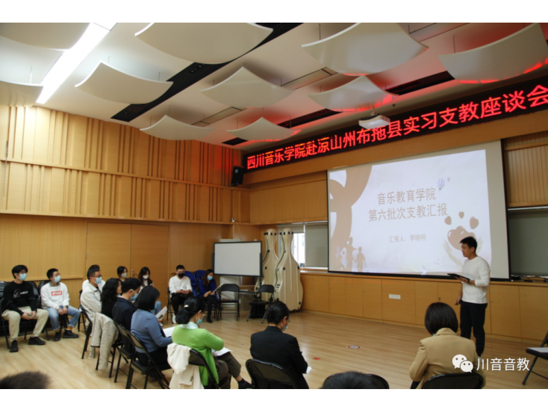 金秋十月,学校第七批次赴凉山州顶岗实习支教座谈会暨出征仪式在武侯校区琴房大楼12楼排练厅举行,大家在新征程、新起点上交流体会、畅谈心得、憧憬未来。学校党委副书记侯钫出席并讲话,会议由音乐教育学院党委书记毛天惠主持,党委常委、宣传部部长、电子音乐系党委书记雍敦全,党委常委、统战部部长、办公室主任胡咏梅,教务处处长郑玉章,学生工作部(处)部(处)长吴科,美术学院党委书记贺阳,音乐教育学院党委副书记杨琳娜,以及有关带队教师、辅导员参加会议。