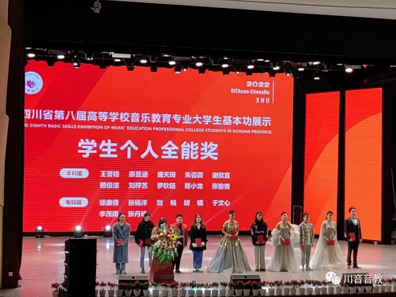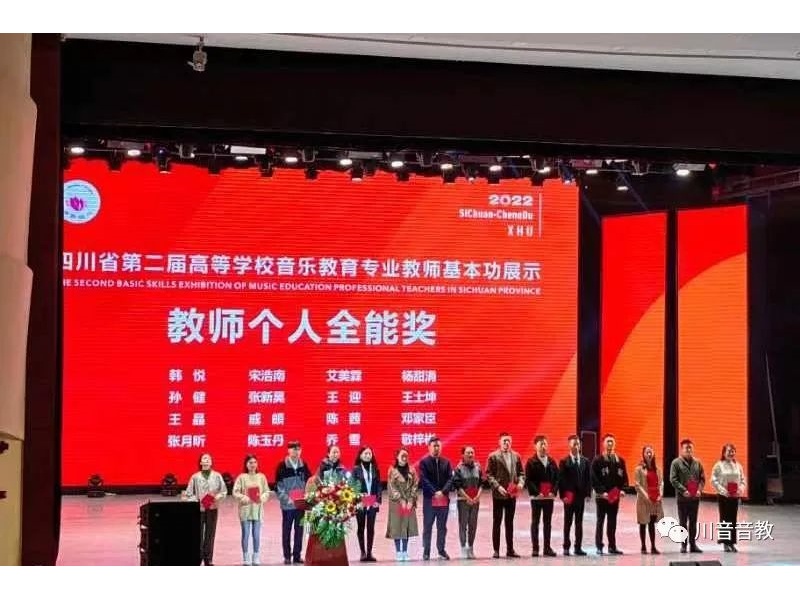 本次展演来自全省30所高校的90名教师,96名本专科学子齐聚西华大学,共同展示音乐教育专业师生的技能和风采。经过5天激烈的角逐,我院在全省30所参赛高校中脱颖而出。囊括了团体、组织、个人全能,个人单项所有奖项的一等奖,充分展示了音乐教育专业教师及学生的风采。