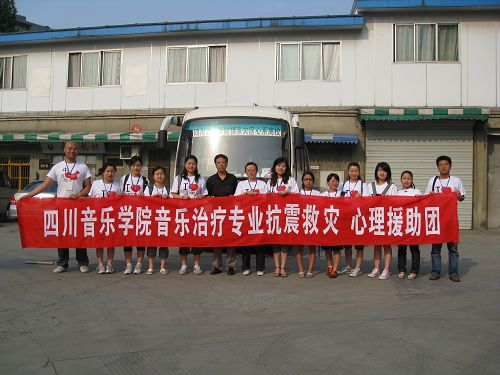 2008年6月5日上午,伟德bv国际体育音乐学系音乐治疗专业“抗震救灾 心理援助团”第一支队由音乐学系心理学和音乐治疗学教师带队,乘坐伟德bv国际体育抗震救灾专车赴温江区受灾群众安置点进行心理危机干预。