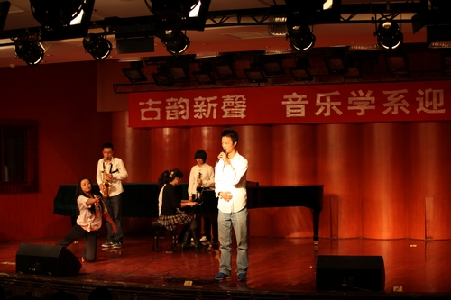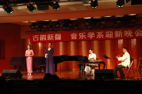2009年12月1日晚7:30,音乐学系“古韵新声”2009年迎新晚会在聂耳音乐厅呈现。 整台晚会以古琴作为主奏乐器,琴声悠扬,沁人心脾。选曲风格各异,《关山月》动无穷之幽趣,而《桃园》铿锵动听,潇洒流动。《广陵散》怨恨凄恻,杀伐铿然,而《流水》活泼潆洄,如流水至上而下,烟波浩渺……晚会动静相宜,时而由古琴声带入意境,时而被何弦老师的《爸爸》深情感动,时而又被《heal the world》high了起来,器乐串烧《回》让西方乐器与中国古琴形成对比,造东西合璧之势。 古琴是我国的古老乐器,得文人雅士所爱。晚会以此方式呈现,让师生们领会到了中国音乐艺术的博大精深,也对弘扬古琴文化起到了良好推动作用。