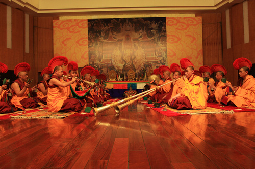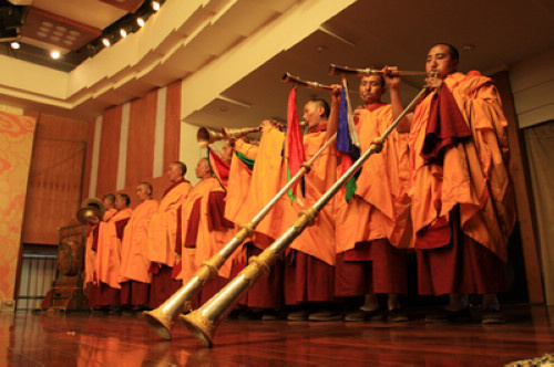 2011年4月21日,受伟德bv国际体育邀请,一场庄严古朴、神秘凝重的千年古乐——“觉囊•梵音”,走进川音小音乐厅举办展演活动,它是来自四川阿坝州壤塘县藏哇寺藏传佛教觉囊派传承的千年梵乐。