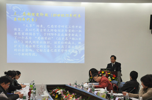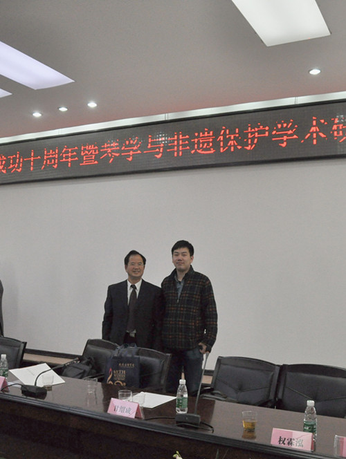 2013年11月23日至25日,由湖北省高校人文社科重点研究基地、长江传统音乐文化研究中心、武汉音乐学院、湖北非遗物质遗产保护中心、湖北音乐博物馆、武汉音乐学院音乐学系共同主办的“古琴申遗成功十年庆典音乐会暨琴学与非遗保护学术研讨会”在湖北武汉音乐学院成功举办。会议以保护、传承、传播、振兴古琴艺术为宗旨,通过庆典音乐会和学术研讨会,为从事古琴艺术表演、琴学研究及非遗保护的琴家与学者提供一个交流、研讨和展现最新成果的平台。所设议题包括“非遗保护的理论与实践研究;古琴流派与历史变迁之研究;古琴艺术的保护欲持续发展研究;古琴艺术的当代教育与传承发展;琴家、琴谱研究;古琴艺术的新视角研究”。我系系主任甘绍成教授应邀带中国传统音乐研究方向硕士生杨迪瑞出席了此次会议,并在会议宣读了他们共同撰写的《建国以来巴蜀琴学研究回顾》一文,回顾总结了建国以来巴蜀琴学研究从20世纪50年代初至21世纪以来所走过的曲折道路——“个别调研阶段”、“艰难求索阶段”、“局部探究阶段”和“全面深化阶段”。一方面分析了巴蜀琴学研究取得的成绩,一方面也指出了它存在的问题。 审稿:甘绍成 摄影:吴志武 杨迪瑞 上传:李 雪