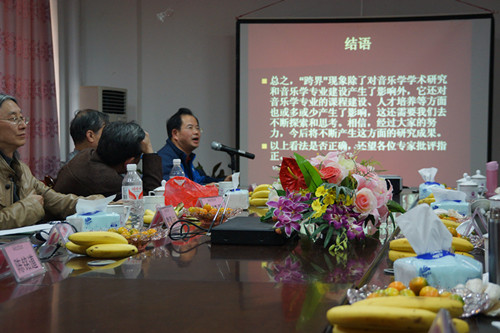 2013年12月6日,由人民音乐出版社主办,《音乐研究》编辑部承办,广西师范大学音乐学院协办的“音乐学‘跨界’问题研讨会”在广西师范大学举行。会议围绕“学术及学科‘跨界’对音乐学研究的意义”、“跨区域、跨国界、跨族群的音乐学研究”、“学术跨界与学科‘接通’的范畴及方法”展开交流与讨论。参加会议的除《音乐研究》编辑部主编、中央音乐学院终身教授、前院长于润洋,中国音乐学院教授、中国少数民族音乐学会会长、院长赵塔里木,中国音乐史学会会长、教育部音乐舞蹈教学指导分委员会主任、原中国音乐学院学委书记、中央音乐学院教授戴嘉枋,福建师范大学音乐学院教授、福建省政协副主席、国际传统音乐学会执委、亚太地区民族音乐学会会长、中国音协理事、福建省音协主席王耀华,中国音乐学院教授、前院长樊祖荫,中国艺术研究院音乐研究所研究员、研究生部前主任、南京艺术学院音乐学院前院长伍国栋,中国艺术研究院音乐研究所研究员、代所长项阳,《音乐研究》主编、人民音乐出版社副社长杜晓十,《音乐研究》常务副主编、中央音乐学院教授陈荃有,中央音乐学院音乐学系教授、前主任、出版社社长张伯瑜,中国音乐学院教授、音乐学系前主任陈铭道,上海音乐学院教授、研究生部主任、中国音乐分析学会常务副会长贾大群,上海音乐学院音乐学系教授、主任、中国音乐美学学会会长韩锺恩,温州大学特聘教授王小盾,天津音乐学院教授、副院长兼音乐学系主任方建军,天津音乐学院教授、音乐学系前主任、学报前副主编郭树群,华南师范大学音乐学院教授、院长黄汉华,西安音乐学院教授、党办院办主任夏滟州,《钢琴艺术》副主编、人民音乐出版社期刊中心主任李航,《音乐研究》编辑萧舒文等国内资深专家、学者外,我院音乐学系系主任甘绍成教授也应邀出席了会议,并在会上宣读了他撰写的《“跨界”现象对音乐学研究与专业建设的影响》论文。