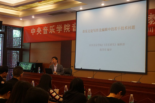 12日下午的讲题为《音乐文论写作及编辑中的若干技术问题》,主要围绕“设定文论标题时的注意事项”、“各类数字形式及序码的恰当使用”、“对音乐技术问题的规范化表述”、“新闻及评论文体中的‘标注’呈现”、“有关论点及敏感问题呈现时的些许交代”五个方面展开。他提出,院校课程以学理性的内容为主,论文写作课也主要围绕着论文的选题、架构、方法等方面展开。论文写作的技术方面在课堂教学中一般不会过多涉及,而学生也常对格式方面的问题不够重视。在这场讲座中,陈荃有老师结合自己工作中的亲身经历、各方面的法律法规以及国内外的学术规范,生动地阐述了在文论写作过程中,格式规范化的重要性。