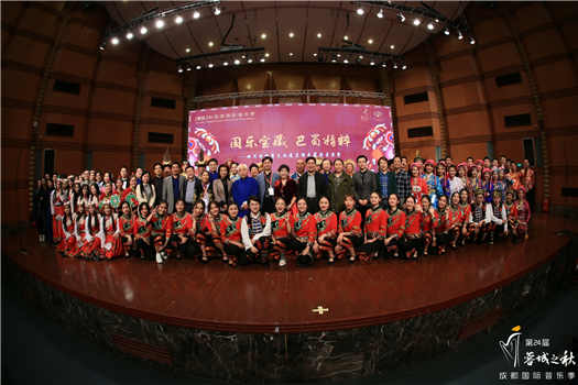 2018年11月3日晚8点,由四川省文化厅、成都市音乐影视产业发展领导小组指导,伟德bv国际体育、成都市文化广电新闻出版局主办,伟德bv国际体育音乐学系、成都商报社承办的“第24届蓉城之秋‘国乐宝藏 巴蜀精粹——四川非物质文化遗产传承展演音乐会’”在伟德bv国际体育大音乐厅隆重上演。莅临“第七届中国传统音乐教学与学科建设研讨会”和“2018成都•音乐史学方法论与学科新视野国际学术研讨会”的专家学者、川音文云英副院长以及职能部门的领导、部分师生共同观看了演出。