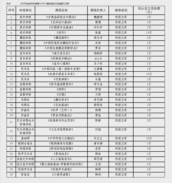 音乐学系获批2020年在线开放课程(MOOC)建设院级立项课程