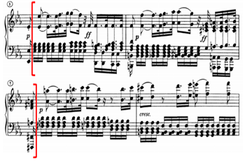 另外,引子中的“不稳定”性涌动的情绪在呈示部后两次以打断的的形态出现(在展开发展部前与结尾的尾声段时),刘教授认为,如果从昆体良的修辞理论看,贝多芬让引子“出其不意”地重现,宛若演讲者在演讲的过程中想继续保持听众那已经在一开始就被点燃的情绪。刘教授认为,在稳定律动下的动机节奏是节制,调解或是压制汹涌情感的关键,它克服了伤感情绪在演讲过程中让演说者的性格失去稳定性。