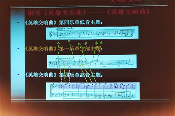 王教授指出,与贝多芬“英雄”题材相适应的音乐形式多是宏大壮丽的。贝多芬常以大胆的革新姿态去重塑其音乐语汇,使音乐焕发出全新的意义。通过建立器乐语汇逻辑、统一构思、乐章贯连、结构拓展、展开核心、体裁重塑、戏剧性效果和持续升华这一系列手段以达到音乐的“崇高”。