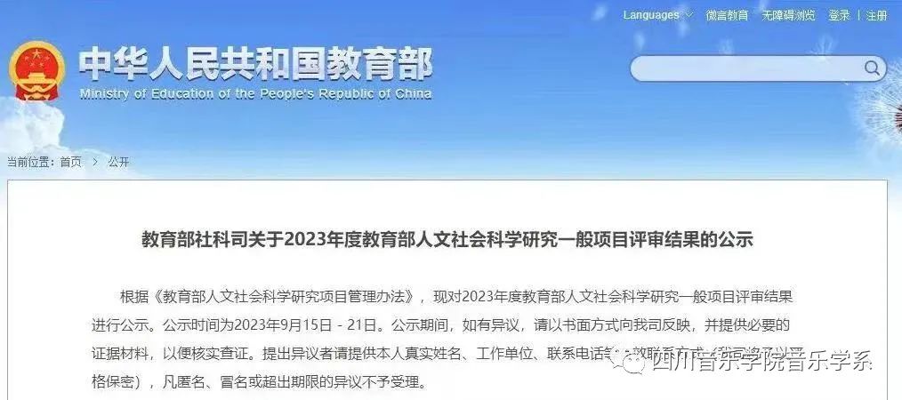 2023年2023年10月19日,教育部人文社会科学研究一般项目评审结果公示,我系谢艾伶副教授喜获立项。