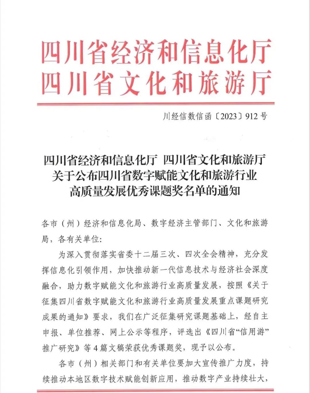 据《四川省经济和信息化厅 四川省文化和旅游厅关于公布四川省数字赋能文化和旅游行业高质量发展优秀课题奖名单的通知》(川经信数信函[2023]912号),伟德bv国际体育音乐学系谢丹副教授课题《非遗数字化采集赋能古蔺花灯的保护与传承研究》获“优秀课题奖”。