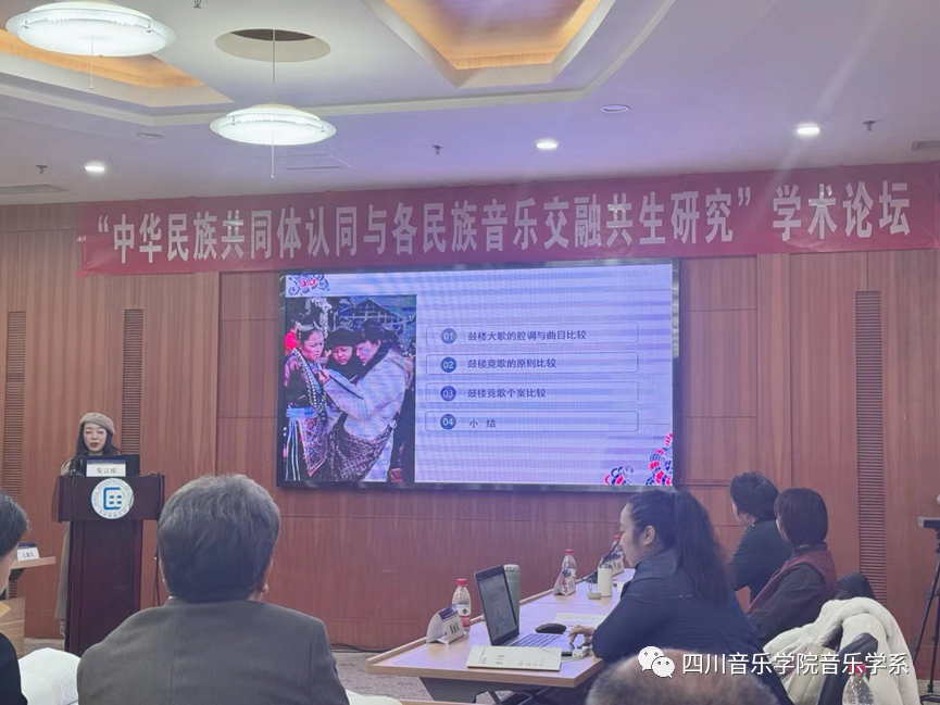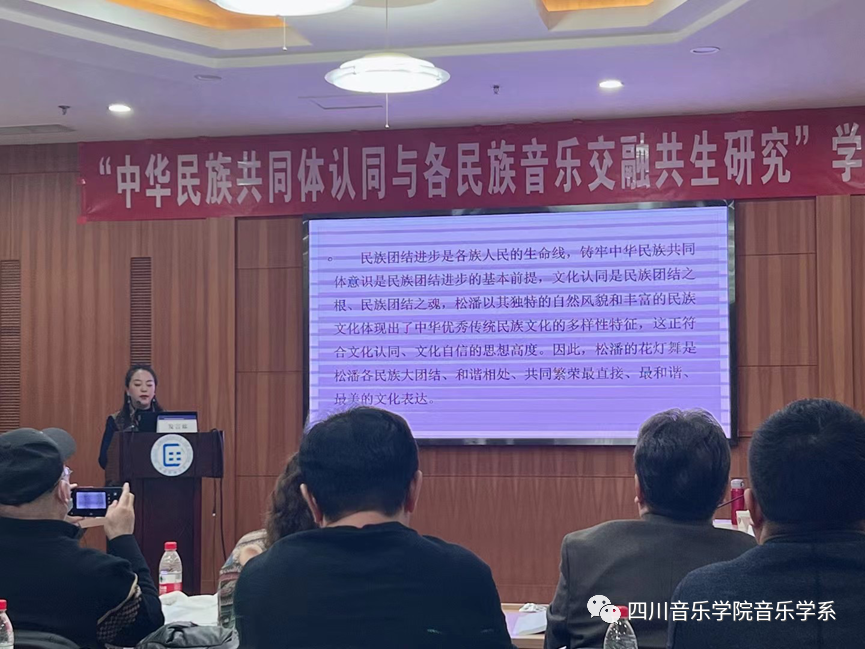 参会期间,格桑梅朵教授与刘雯教授分别主持小组会议,并以《铸牢中华民族共同体意识——以松潘藏羌回汉花灯舞为例》、《岩洞寨与小黄寨春节鼓楼竞歌比较研究》作主题发言,向参加本次会议的专家学者展示了伟德bv国际体育音乐学系在贯彻铸牢中华民族共同体意识下挖掘各民族音乐文化交往、交流、交融等方面取得的优秀成果,获得参会专家学者们的广泛好评,反响热烈。