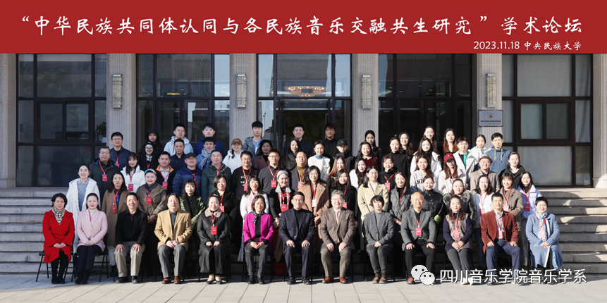 2023年11月18日上午,“中华民族共同体认同与各民族音乐交融共生研究”学术论坛在北京中央民族大学海淀校区顺利举行,我系副系主任格桑梅朵教授、传统音乐教研室主任刘雯教授带领研究生张宇、宋浦申及本科生范栩受邀前往参加会议并做主题发言。