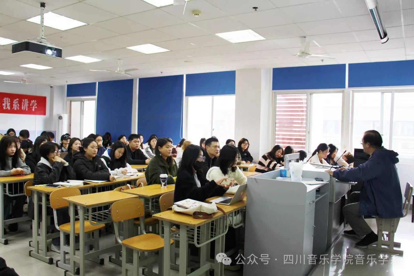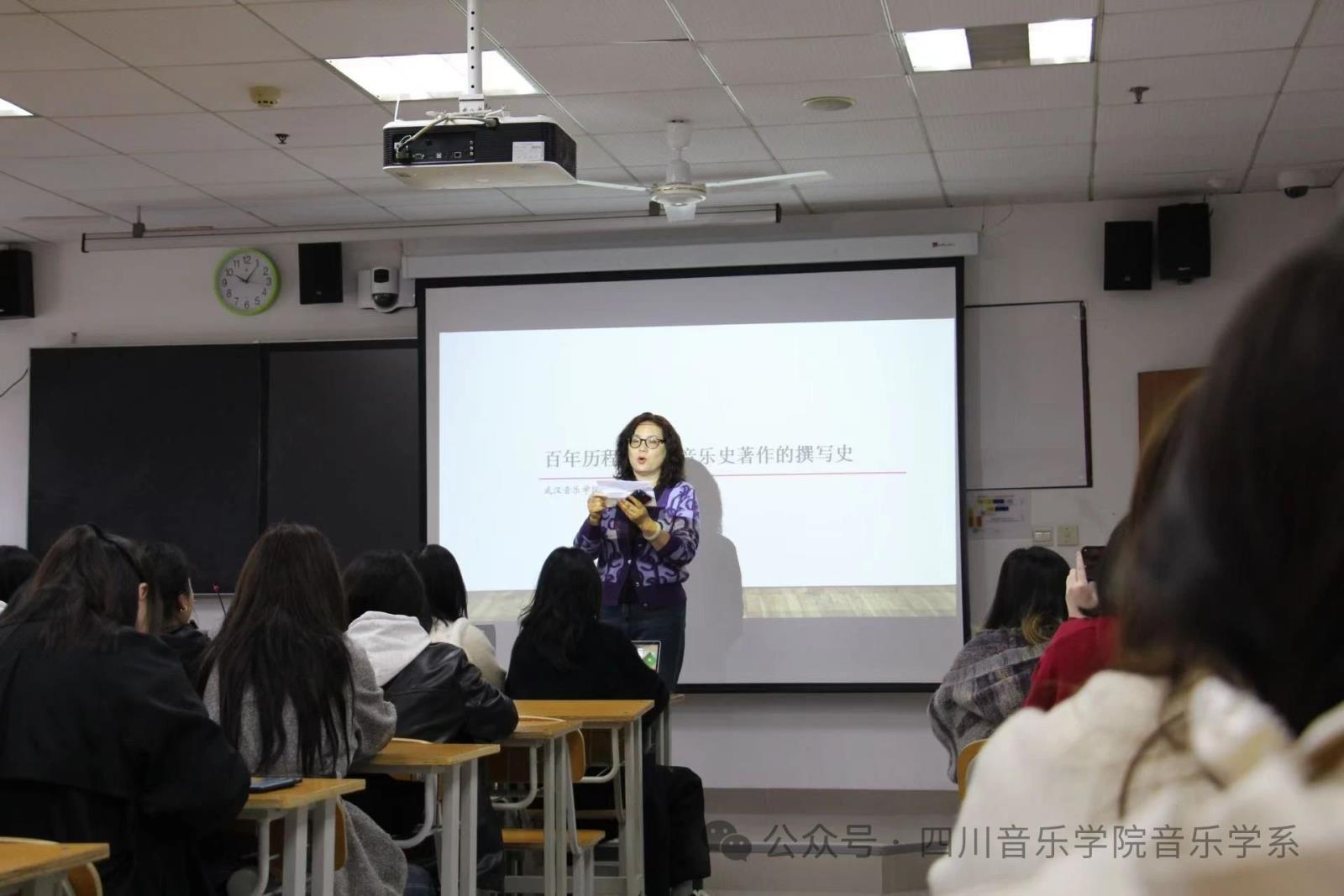 11月15日上午,武汉音乐学院二级教授、博士生导师、哈尔滨音乐学院特聘教授、学报《北方音乐》常务副主编田可文教授应伟德bv国际体育音乐学系邀请,在武侯校区教学楼507教室举办了一场题为《百年历程:中国音乐史著作的撰写史》的学术讲座。音乐学系周夏虹书记、谢丹副教授、吕畅副教授,以及音乐学系众多师生到场聆听讲座,现场气氛热烈、活跃。讲座由音乐学系党委书记周夏虹主持。