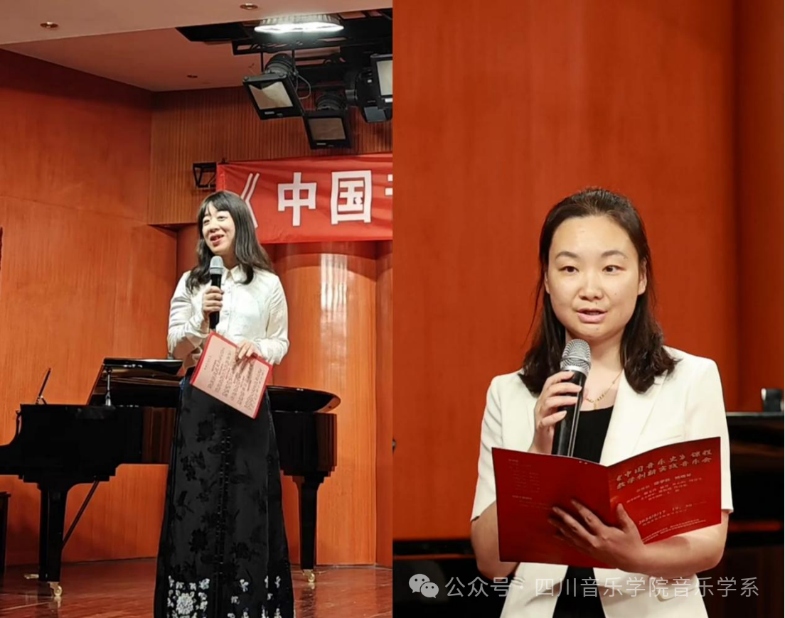 音乐学系副系主任、刘雯教授和声乐歌剧学院党委副书记、纪委书记李娜老师在此次音乐会开始前为在场的观众介绍了该场中国音乐史课程教学创新实践音乐会的重要意义。