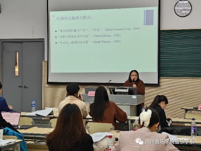 王娜娜老师在“第三潮流与舞蹈音乐专题小组”中发言,以作品《修女的芭蕾》为例,对19世纪钢琴改编曲进行了剖析,作了题为《移植·重塑·融合——以三首<修女的芭蕾>钢琴改编曲为例》论文宣讲。王娜娜老师在“第三潮流与舞蹈音乐专题小组”中发言,以作品《修女的芭蕾》为例,对19世纪钢琴改编曲进行了剖析,作了题为《移植·重塑·融合——以三首<修女的芭蕾>钢琴改编曲为例》论文宣讲。