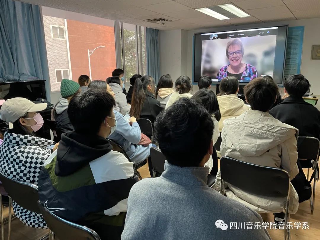 Wheeler教授学识渊博、幽默生动,运用自己多年的临床、科研及教学经验为同学们带来一场丰富而精彩的讲座,解答了同学们在专业学习上的疑难问题。  最后,王露洁老师总结:Wheeler教授在推动世界音乐治疗行业发展中贡献了巨大的力量,同样她也关心着中国音乐治疗行业的发展,自09年汶川地震后首次赴川音开展音乐治疗学术讲座以来一直与中国的音乐治疗师保持密切合作,她在临床中严谨而富有灵性的工作风格深深地影响着年轻一辈的音乐治疗师。在热烈的掌声中,讲座就此圆满结束。