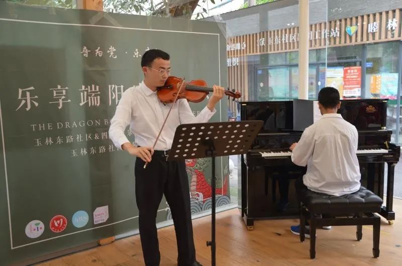 为隆重庆祝中国共产党成立100周年,深入贯彻落实习近平总书记在《党史学习教育动员大会》上的重要精神,我系师生充分发挥专业优势,将党史学习教育与音乐艺术相结合,于2021年6月14日下午在成都市玉林东路社区开展了“音为党·乐声扬”乐享端阳室内音乐会。此次活动由伟德bv国际体育音乐学系、成都市玉林东路社区主办,并由音乐学系副科钢琴教研室的老师们共同组织学生参与活动。玉林东路社区党委书记杨金惠,以及部分老党员出席参加了本次音乐会。