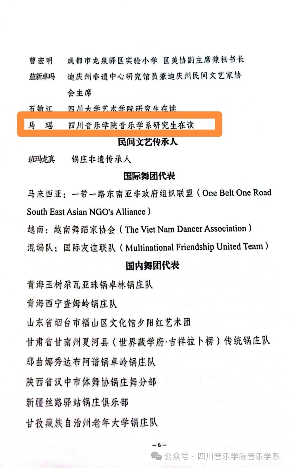 在学术探索与实践深耕的道路上,我系始终鼓励学生勇于创新,积极投身田野调查与学术交流。2025年暑期,我系2024级西南少数民族音乐研究专业硕士研究生马瑶同学在朱婷教授悉心指导下,先后入选两项国内高水平学术活动,充分展现了我系研究生培养的优势与办学实力。