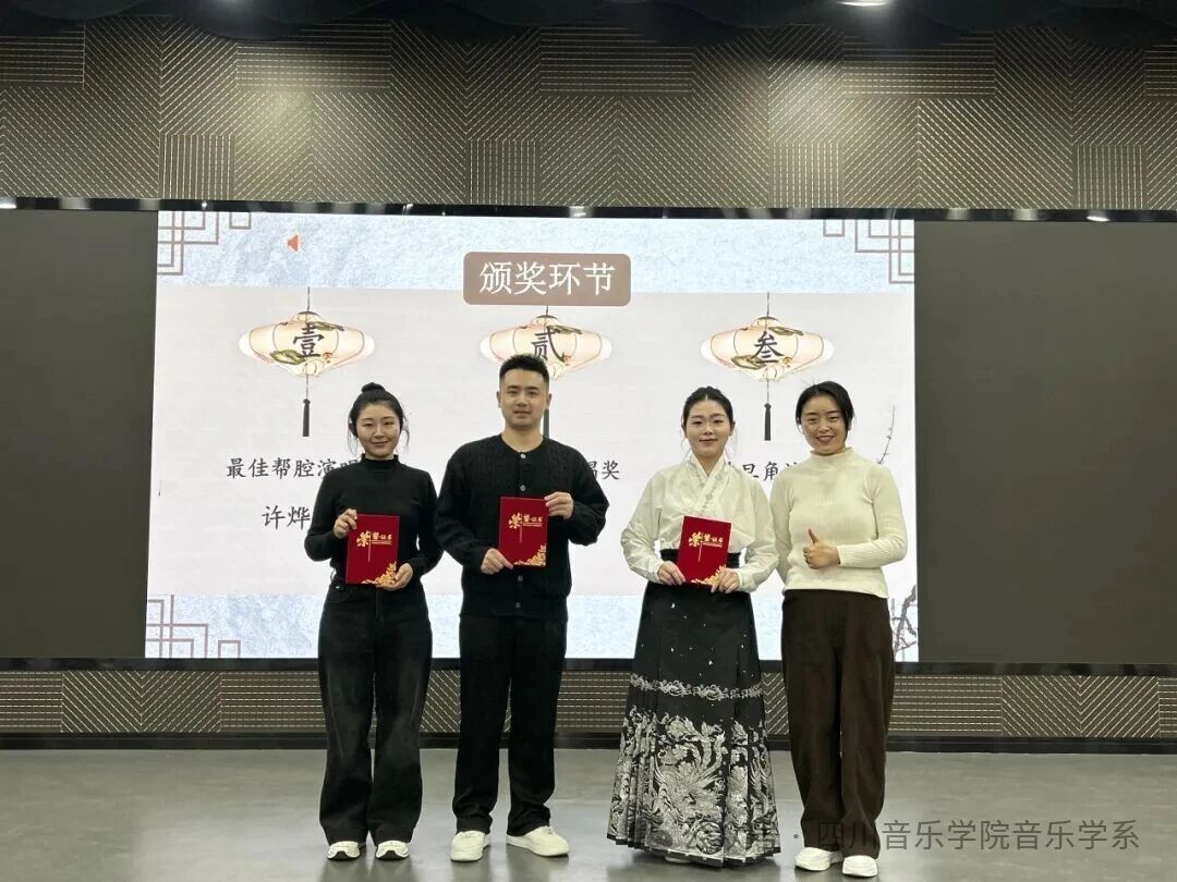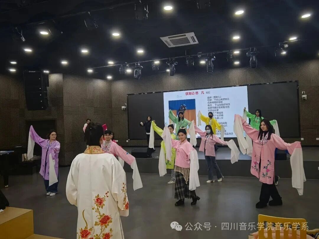 在这样的教学理念下,非遗不再只是被“讲述”的对象,而是在持续地学习、排练与舞台呈现中,被真正“用起来”“唱出来”。同学们在掌握非遗隐约专业技能的过程中,也逐渐建立起对巴蜀地域文化的理解与认同,使专业学习与价值引导在课堂中自然融合。