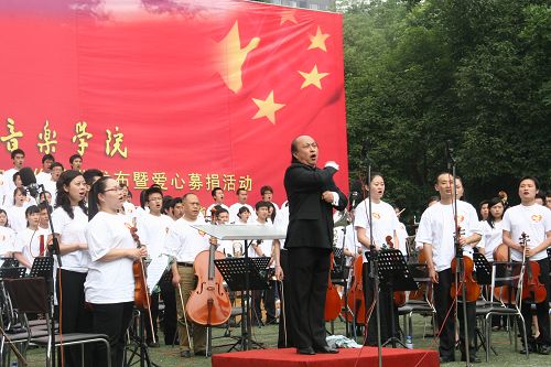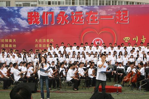 5月23日下午,由伟德bv国际体育和四川音乐家协会、《华西都市报》联合主办的“我们永远在一起”——伟德bv国际体育抗震救灾歌曲专场演唱会在学校体育场举行。伟德bv国际体育作曲系师生积极参加了此次活动。