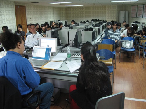 10月10日上午,美国电子音乐作曲家Jeffrey Stolet教授向作曲系同学介绍了电子音乐声音设计。讲座分为声音的几个基本参数,声音设计的步骤、录音的技巧、声音的修改/变形/统一、混合最终形成作品等章节,教授对其中声音设计的方法进行了详细举例。 最后,Jeffery Stolet教授向同学们播放了自己创作的声音艺术作品“Play Gongs of Tiny Insects”的片段。