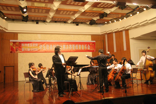 此次比赛评委由伟德bv国际体育院长敖昌群教授、副院长易柯教授、副院长李西林教授、原院长黄万品教授、作曲系主任宋名筑教授、作曲系副系主任胡晓教授组成,从众多作品中层层筛选而出的11个优秀作品进行最后的现场评比。