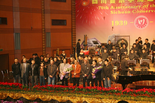 该音乐会由杨新民教授的作品《仲秋序曲》拉开帷幕,该作品专为这个金色的秋天而作,包涵热情、达观、 浪漫、诙谐的情绪。全曲深情而热烈,寄托了作曲家对母校深厚的濡慕之情。随后,乐团带来了胡晓教授为5.12大地震而作的作品《Eulogy for Immortal II—for Flugelhorn and Symphony Orchestra》,作品描述性极强,仿佛将听众带回到一年之前那个终生难忘的时刻,沉重、焦灼、希望,百感交集。作曲系张志亮同学及刘博同学分别带来了各自的作品,张志亮取材于“庄生梦蝶”哲学理念创作的《蝴蝶梦》,刘博同学运用交响手法创作的管弦乐交响诗《黔风情韵》,在继承传统的同时又透露出一股青春的气息。接下来,爱乐乐团呈现了林燕老师《碎裂之光—为大型管弦乐队而作》、敖翔老师创作的《格桑梅朵—为弦乐队而作》和谭金刚老师的作品《年轮》。作品创作的灵感都来自于生活的感悟,作品体现出作者真挚的情感,音乐语言质朴,勾起了听众对于自己生活体验的联想。