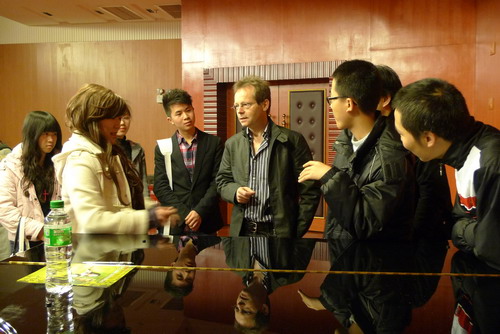 此外,他还给同学们播放了他自己创作的三首示范性作品:第一首是1999年创作的《Poren》(毛孔),三支中音单簧管融为一体,浑然天成。作品约7分钟,表现出类似大提琴或男高音的高亢音色,蕴含着莫扎特的一种思想;第二首是小提琴独奏曲《烦恼》,在将近7分钟里,它间接要告诉了听众,人是如何通过感官获得信息、转化信息,再传递到自己丰富的情感世界里;最后一首2009年创作的钢琴独奏曲《Me and Me》,是三首组曲里的第二首,围绕“我”而展开写作的。这首作品体现了作曲家的观点,即人并不仅是你我他,更重要地是如何在世上感受,表现和施展自己。三首曲子欣赏完毕后,Felix Baumann教授还兴致勃勃的和同学们就三首曲子的音乐融合性和结构处理等方面进行了深入交流,同学们都对此次讲座感触颇深,也对作曲的理念有了个更深层次的理解。