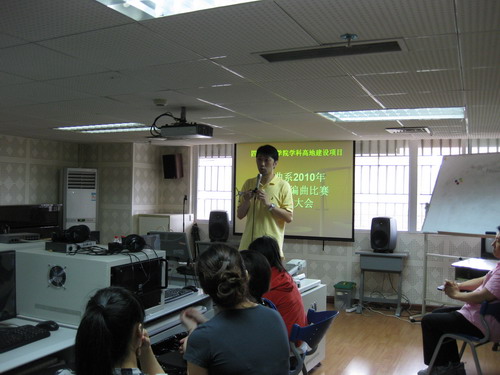 2010年6月10日下午2:30,作曲系录音艺术同学与爵士鼓编曲比赛选手参加了评奖大会。评奖大会上,作曲系白小墨老师介绍了比赛的评选过程与作品参赛情况。