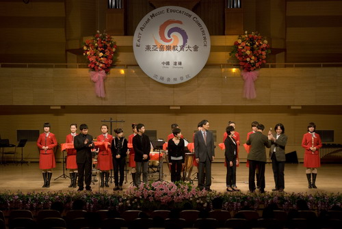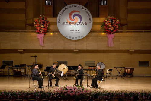 2010年9月25日至27日,首届东亚音乐教育大会(1st East Asian Music Education Conference)在沈阳音乐学院举行。本次大会是由沈阳音乐学院、日本昭和音乐大学、韩国启明大学等发起举办的,我院作为成员单位参加了本次大会的活动。大会旨在通过三国音乐类高校的互相交流,促进东亚音乐高校艺术教育能形成更好的学术氛围,达到携手合作、共同发展的目的。西安音乐学院、吉林艺术学院和日本的仓敷大学、作阳大学也参加了本次大会。三天的活动中,举办了学术论坛、室内乐作品比赛获奖音乐会以及各类交流活动等。我院作曲系杨晓忠副教授的室内乐作品《移动的背影》,杨新民教授的室内乐作品《脸上的油彩——为长笛与钢琴而作》(Face-Painting——For Flute and Piano)分别获得优秀作品奖和创作奖(本次比赛不设等次奖)。现代器乐系李雨生教授率萨克斯四重奏组在大会上演奏了杨晓忠副教授的获奖作品《移动的背影》,受到参会院校的广泛关注。该作品为2009年7月泰国曼谷第15届世界萨克斯管大会(15th World Saxophone Congress)参演作品;2010年7月美国南俄勒冈州立大学第10届萨斯克尤萨克斯管音乐节(The Oregon State University System’s Designated Center of Excellence for the Fine and Performing Arts)参演作品。