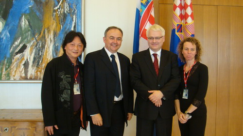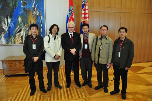 音乐节期间,克罗地亚总统约西波维奇在总统府接见了全体与会代表,与我院代表亲切交谈并合影留念。协会主席大卫先生建议伟德bv国际体育尽快向协会提出申请,以便能够成为该协会的正式成员。