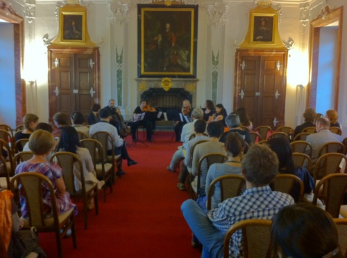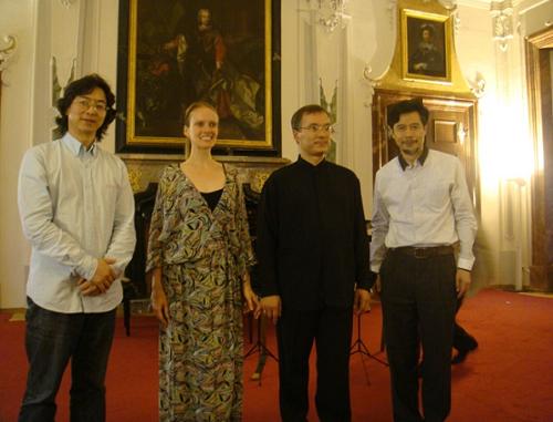应国际CASI室内乐协会邀请,2012年7月24-30日,作曲系主任宋名筑教授、副系主任杨晓忠教授及邹向平教授赴捷克布拉格出席了由CASI室内乐协会举办的“第十九届AMEROPA 2012”室内乐音乐节。 本届音乐节共举办十余场音乐会,来自捷克、美国、西班牙、法国、 瑞士、塞尔维亚、以色列、俄罗斯等国家和地区的演奏家,演奏了宋名筑教授的弦乐四重奏《Gong Cha》、杨晓忠教授的三重奏《花夜》、邹向平教授的钢琴三重奏《记忆-I》和其他国家作曲家的作品。 与会期间,举办了“中国音乐专题讲座”。三位教授介绍了近年来伟德bv国际体育在新音乐创作、研究和表演方面的有关情况,与欧洲作曲家及室内乐演奏家进行学术交流,引起各位作曲家及室内乐演奏家极大的兴趣和反响。 同时,三位教授还就今后伟德bv国际体育与欧洲作曲家之间,在音乐创作、研究和表演方面进行合作、增进交流的可行性,与CASI室内乐协会进行了广泛而深入地探讨,达成了未来继续合作与交流的意向。