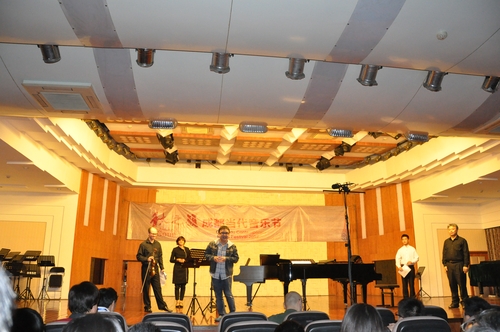 上半场中,安良冈•章夫的《咏叹调》展示了一个非常现代化的咏叹调,该曲运用不断被打断的音画形成内部推动,在吟唱式的线条和空间中蓄积力量。陈明志的《太极行歌诀》以单簧管、中提琴和大提琴互为主导,通过2个4音组的延伸、牵引、拼贴、音层积迭,以及中国戏曲中的板式组合等技术,展现出陈氏太极中攻防百变、外柔内刚的精神。陈锦标的《和平片刻》通过两个轮流出现的对比素材,表现生理及心理上和平时刻的不同形态。上半场上演的最后一首作品是我系青年教师郝宇锴的《安魂曲》——为5.12汶川大地震的受难者而作。该曲以“Ⅴ、Ⅰ、Ⅱ”三个音级为主要动机进行展开,动静结合,相得益彰。在作品中,作曲家以充满弹性的律动和丰富变化的音色,展现出音乐戏剧、深刻、大气等各种性格,真实再现了地震来临时的画面,具有震撼人心的力量。
