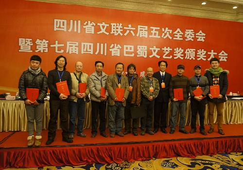 1月17日上午,四川省文联六届五次全委会暨第七届巴蜀文艺奖颁奖大会在蓉召开,四川省人大副主任、省文联主席郭永祥,省委宣传部副部长朱丹枫,省文联党组书记、常务副主席蒋东生,党组副书记、副主席陈黔鲁,党组副书记李兵等出席会议。 四川省巴蜀文艺奖是经省委、省政府同意设立的全省性专业文艺奖,是四川省文艺界的最高奖,每三年评选一次,由省文联负责组织实施。第七届(本届)四川省巴蜀文艺奖在省委、省政府的关心支持下,在省委宣传部的指导下,经过近半年的评选, 已圆满结束。经评选,全省共有10部音乐作品被授予 “第七届四川省巴蜀文艺奖·音乐奖”(金奖2部、银奖3部、铜奖5部),我院作曲系系主任宋名筑教授的小提琴与钢琴《彝歌》和青年教师敖翔的交响乐《阔时节之夜》荣获金奖,副教授黄旭(与石磊合作)的竹笛与乐队《新疆印象·天山马》获铜奖,昌英中教授的合唱《吉祥阳光》获特别奖。