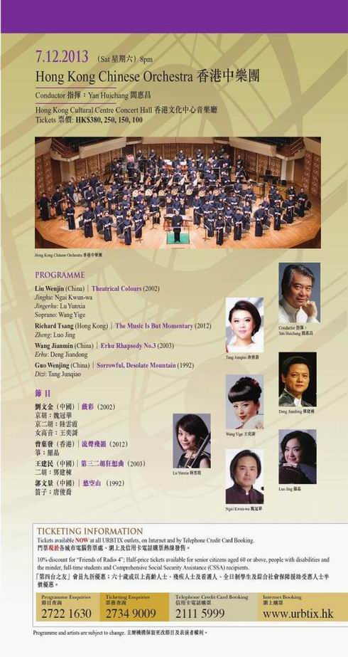 由香港作曲家联会主办的香港“2013华人作曲家音乐节”于2013年12月3日至7日在香港举行。来自德国、加拿大、马来西亚、瑞士、美国、中国等国家及香港、台湾地区的华人作曲家参加了该音乐节。在为期5天的音乐节期间举行了中西方乐器混合室内乐作品、声乐作品、西洋乐器室内乐作品、香港作曲家作品等专场音乐会。12月7日晚由香港中乐团担纲在香港文化中心音乐厅举行了闭幕式音乐会。 我系老师郭元博士为G调大笛与颤音琴而作的《管涌I》(2008)在该音乐节针对全球华人作曲家的作品征集中入选,由Chinese Music Virtuosi 与 Ensemble Amici室内乐团于3日晚在上环文娱中心剧院上演。 秉承展示华人创作成果,探讨新世纪创作理念的宗旨,香港作曲家联会曾于1986年成功地举办了第一届“中国现代作曲家音乐节” 以及2003年第二届“2003华人作曲家音乐节” 。 在本届音乐节期间还举办了题为“回顾与前瞻:全球化时代下的华人作曲家”学术研讨会。 作曲系 2013-12-16