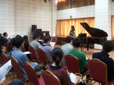 应伟德bv国际体育作曲系、作曲技术研究中心的邀请,来自美国的学者斯蒂芬妮•提图斯于2014年5月16日在学院二楼多功能厅主讲了一场名为“贝里奥的《模进》”的学术讲座。 斯蒂芬妮•提图斯女士获得伊士曼音乐学院钢琴演奏与理论教学硕士学位,目前正在攻读州立鲍灵格林州立大学的当代音乐博士学位,师从于托马斯罗森克朗茨教授。提图斯是一个充满激情演奏者,她的独奏曲目包括经典和当现代钢琴作品。作为艺术指导,她已与多个室内乐团合作,她最近的室内乐曲目包括布列兹的《为长笛和钢琴而作的奏鸣曲》,卡特的歌曲集《爱情的挑战》,和美国首演迈克尔皮息的《歪像II-Polymorphia》。提图斯最近的独奏曲目包括武满彻的完整的钢琴独奏作品、利盖蒂练习曲,以及贝里奥的《SEQUENZA》之四。 斯蒂芬妮提图斯向师生讲述了作曲家贝里奥在《SEQUENZA》之四中独特的创作理念和各种高难度的演奏技巧并作了精彩的示范。讲座受到了作曲系师生的热烈欢迎和一致好评,使广大师生受益匪浅。 作曲系 2014年5月19日