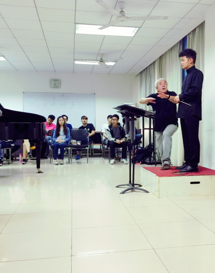 此次,爱华德教授在大师上一共向在场的老师和学生们公开指导了四名作曲系指挥专业的在读研究生,作品分别是贝多芬《第五交响曲第一乐章》、贝多芬《艾格蒙特序曲》、柴可夫斯基《第五交响曲第一乐章》和贝多芬《第六交响曲第一乐章》。课上大师从最基础的指挥技法,到如何准确地把握音乐速度与节奏,从用最简单的技术手势来表现音乐,到如何深刻地理解不同风格的作品并对其中的难点进行音乐处理做了详细地讲解。大师以严谨细致的工作态度,轻松幽默的教学方法,真诚敬业的专业修为感染了在场师生,让听课者受益匪浅。爱华德教授教育年轻指挥要用心理解、感受和表达音乐,应更多的把注意力放在音乐上,而不只是注意指挥的动作。他为大家上了一堂精彩、实用的大师课,给在场师生留下了非常深刻的印象。