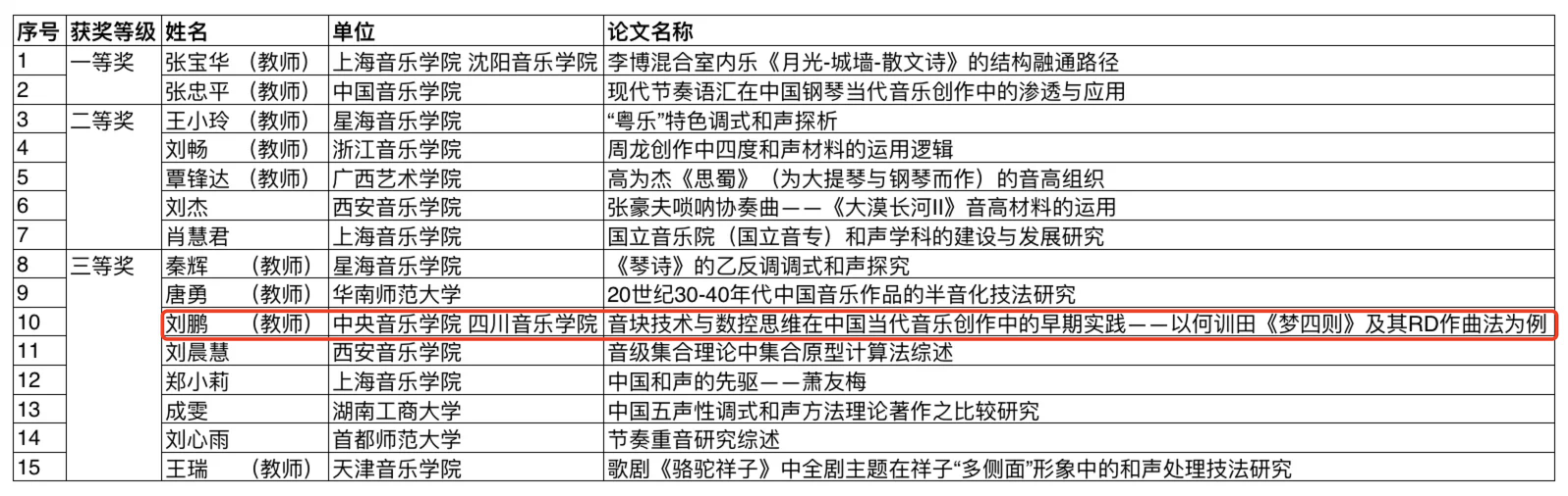4月26日,由国家社科基金艺术学重大项目“中国现当代作曲理论体系形成与发展研究”课题组、上海市作曲理论研究(重点)创新团队联合主办的“论文征集与比赛——百年中国音乐音高&节奏的理论与教学研究”学术活动,历时近5个月后公布了获奖名单。经专家委员会评审,中央音乐学院在站博士后、伟德bv国际体育青年教师刘鹏老师提交的参赛论文《音块技术与数控思维在中国当代音乐创作中的早期实践——以何训田〈梦四则〉及其RD作曲法为例》荣获该项比赛三等奖;作曲系2018级和声专业硕士研究生肖悦提交的参赛论文《音高结构与音乐形态演变关系之研究——以勋伯格〈空中花园〉op.15为例》(指导老师,胡晓教授)荣获该项比赛优秀论文。两篇获奖论文将于6月18日在腾讯会议平台上作线上研讨会进行论文宣讲。