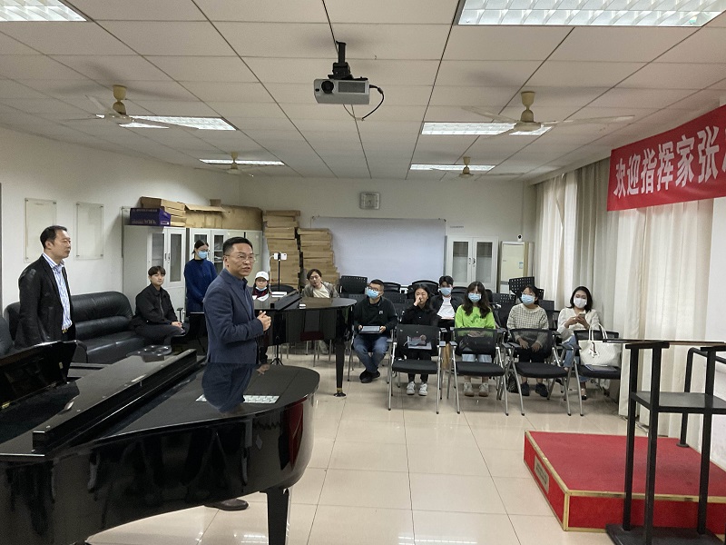 最后,作曲系党委书记姚春城教授对张老师的讲学做出高度评价,并强调指挥学生要从指挥技术、声部平衡、乐队控制等方面夯实指挥技法,同时要有强大的理论支撑,希望大家运用所学四大件的理论知识来对总谱进行分析,只有具备深厚的理论功底,指挥才能准确地诠释作品。
